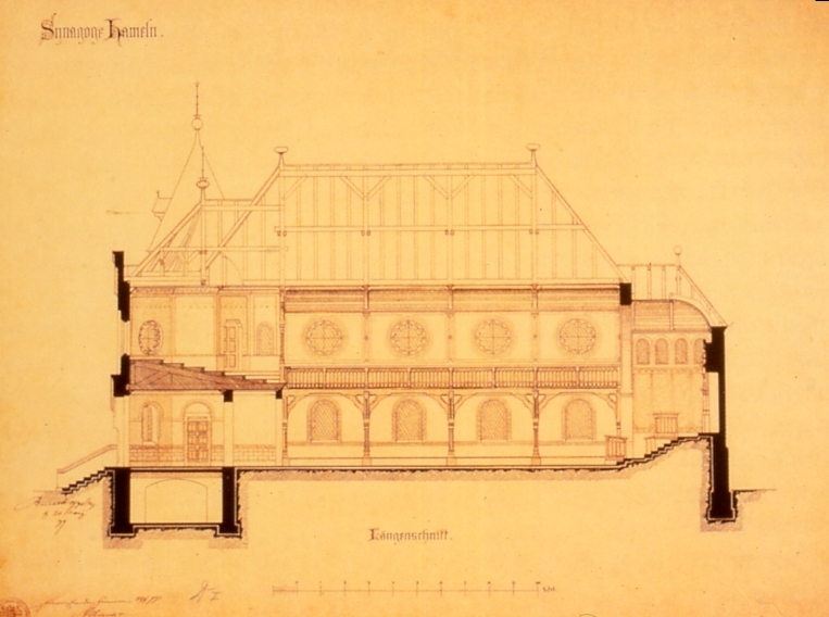 Das Gotteshaus, das dort nun neu errichtet wird, ist Stein gewordenes Zeugnis der staatstragenden Gesinnung der Hamelner Juden. Der monumentale Bau verkörperte die überwiegend konservative und nationale Haltung der Gemeinde auf eindrucksvolle Weise. Vorsteher der Gemeinde ist damals Carl Michaelis; seinen Onkel, Salomo Heinrich Michaelis, hatten wir oben als Verleger, Hochschullehrer und Zensor kennen gelernt.